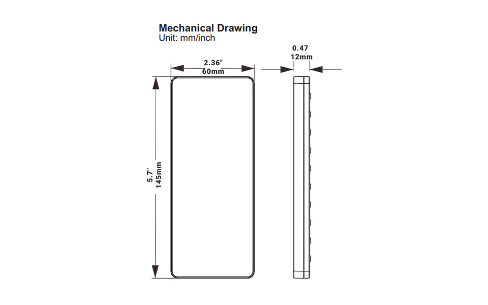 5.70" x 2.36" x 0.47"