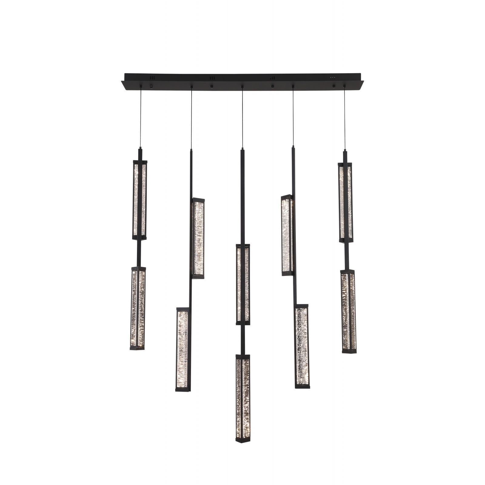The Metropole Collection — bold, architectural lighting reimagined. Long angular metal tubes encase textured, crystal-like glass panels, evoking the natural rhythm of organic ribbing. Each fixture casts a radiant glow that transforms your space into a statement of modern elegance and sculptural artistry.