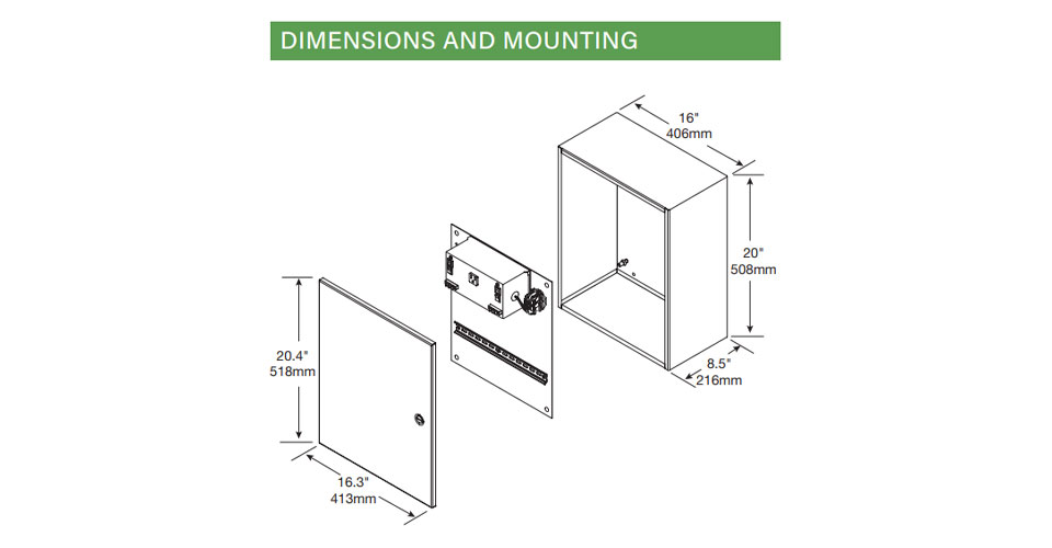 The LMNC is a surface-mount NEMA1-rated enclosure with DIN rails for mounting DLM network components. Comes with hinged cover and provided empty (LMNC-MT) or with 1–9 installed routers. Based on the catalog number suffix, a specific number of NB-ROUTERs and an NB-SWITCH can be installed in the panel and pre-wired to a power supply. Two single outlets are provided on the power supply, one for connecting an LMJA Network Controller plug-in power supply, and a convenience outlet for a laptop or other technician required components.