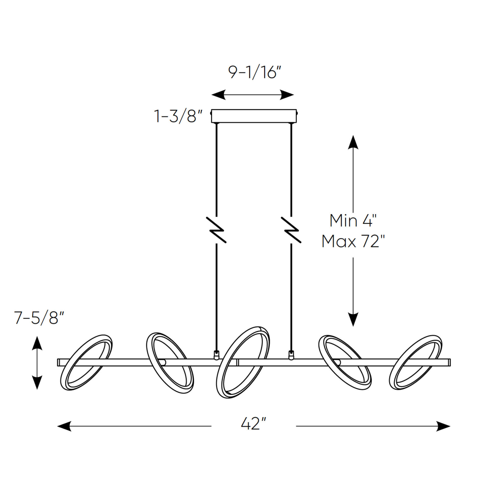 A statement lamp with a lot of character. With its 5 adjustable rings, this linear pendant emits a bright light that makes it perfect for use as a primary light source over a kitchen counter, dining table, or even in a bar setting.