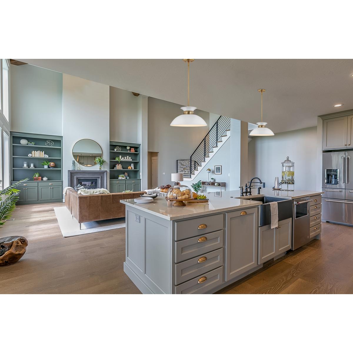 The simplistic design of the Perkins small pendant is understated, yet refined. The decorative burnished brass band on the shallow-dome metal shade cinches at the top, creating the illusion of a swirling skirt. The white interior of the shade provides maximum light reflection and is complemented with a matte white finish on the exterior. No longer just for the kitchen, this beautiful pendant will give any room in your home a facelift.