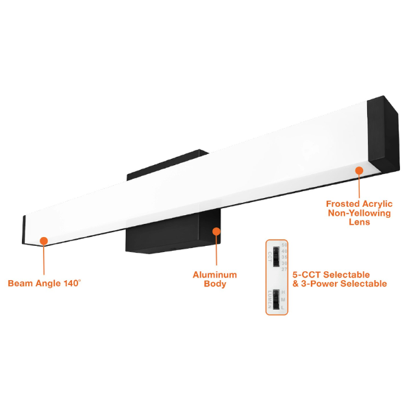 22" Contemporary Square Full Vanity Light, CCT Selectable, Black Finish by EnvisionLED