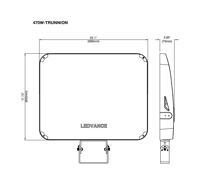 - FLEXMOUNT: 1/2" IPS knuckle and trunnion (30W and 60W) or slip fitter and trunnion (140W, 300W, 470W) included in the box