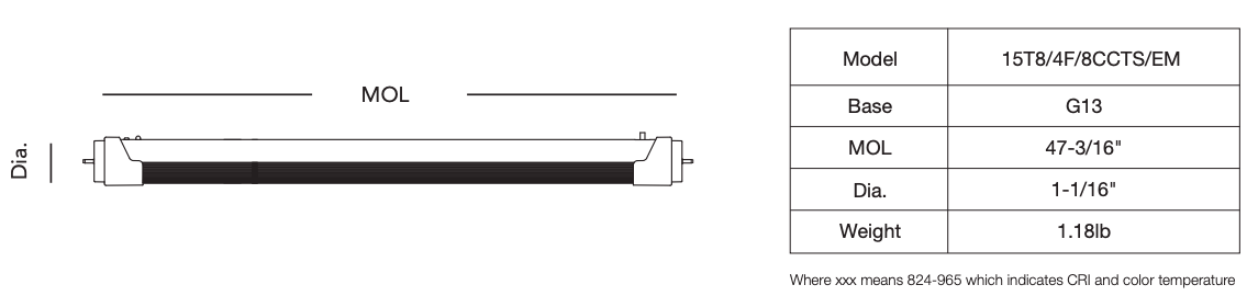 The 4' CCT Select Emergency Linear Tube by Green Creative is a versatile and reliable emergency lighting solution. It features a built-in lithium battery that provides 600 lumens of illumination for up to 90 minutes during power outages. With selectable color temperatures and a durable construction, this emergency tube is ideal for a variety of applications.