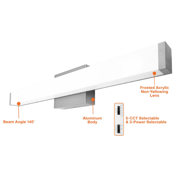 45" Contemporary Square Full Vanity Light, CCT Selectable, Brushed Nickel Finish by EnvisionLED