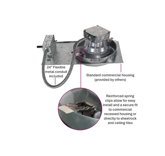 ProLED® Commerical Downlight Retrofits are a long life and energy efficient replacement for traditional lamps. The 6" LED Commercial Downlight Retrofit features an integrated junction box for quick and easy installation into existing housings or directly mount to drywall or ceiling tiles. It is dimmable, easy to install and delivers a maintenance-free experience with a 50,000- hour useful rated life. With its superior LED technology and performance, the ProLED Commercial Downlight Retrofits deliver consistent color, uniform illumination, and long life for your lighting design.