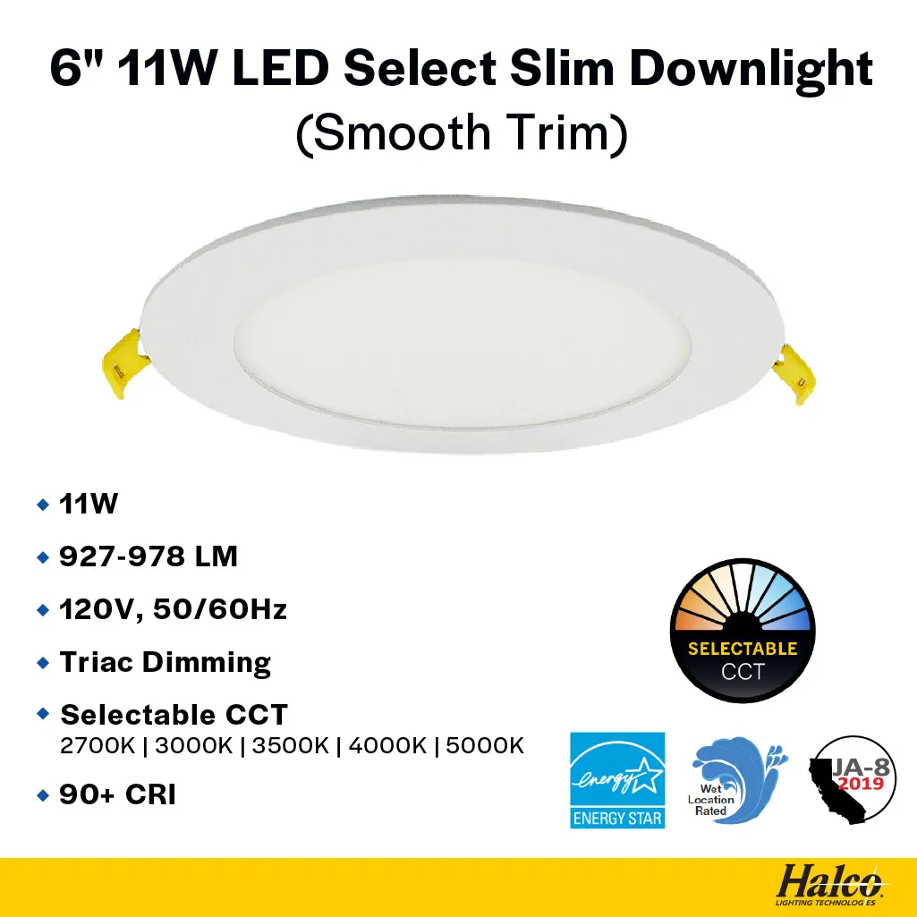 6" 11W ProLED Select CCT Selectable Flat Slim Downlight by Halco