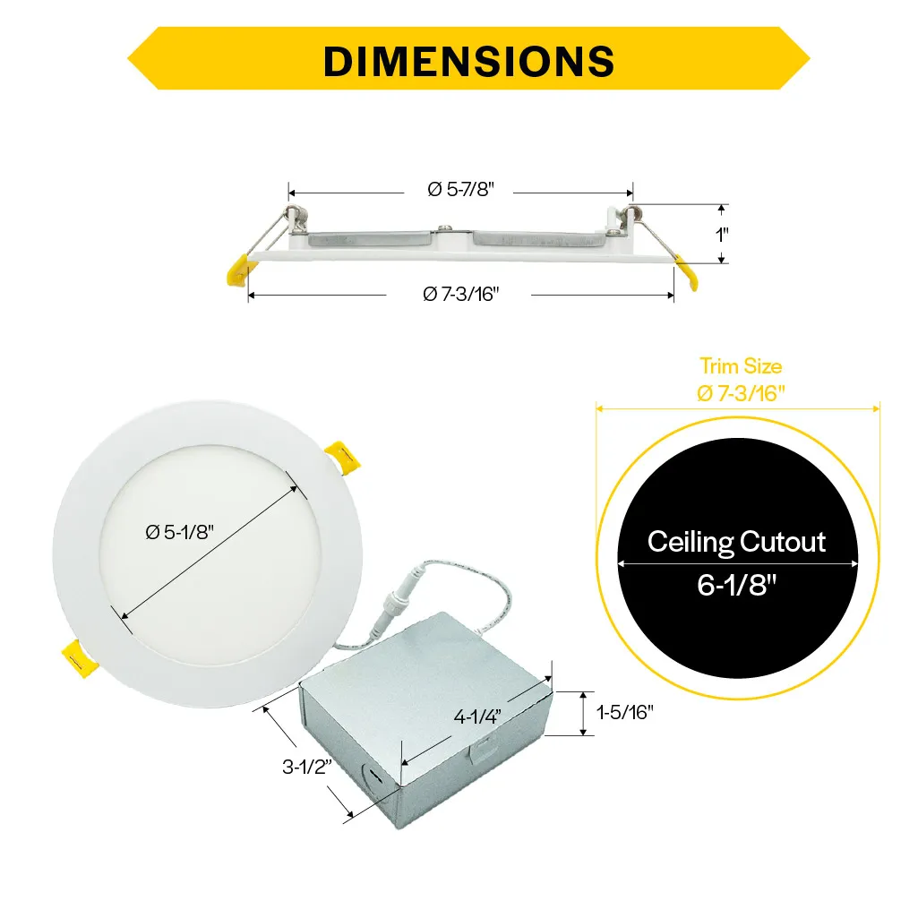 The Halco ProLED Color Selectable CCT Slim Downlight Series provides a high performing, ultra-slim, modern solution for new construction and retrofit downlighting projects. It offers the ability to select between 5 color temperatures which essentially reduces 35 products down to just 7 SKU's. This innovative product is available in both round and square, 3in, 4in, 5in, and 8in housings with four different lumen outputs to make this one of the most versatile residential downlights on the market. A perfect choice for Ceiling Light, Overhead Light, Awning Lighting, and Under Eave lighting.
