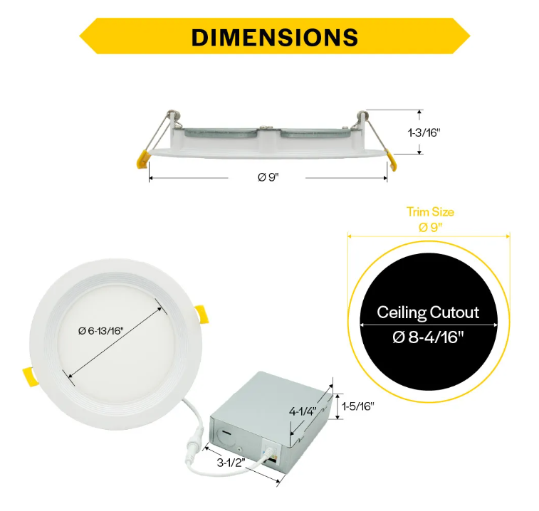 The Halco ProLED Color Selectable (CCT) Direct Fit Slim Downlight Series provides an ultra-slim solution for shallow plenum spaces in both new construction and retrofit downlighting applications. This product features five selectable color temperatures, 90+ CRI and a low glare output to provide a high performing and simple solution for any lighting project. A perfect choice for Ceiling Light, Overhead Light, Awning Lighting, and Under Eave lighting.