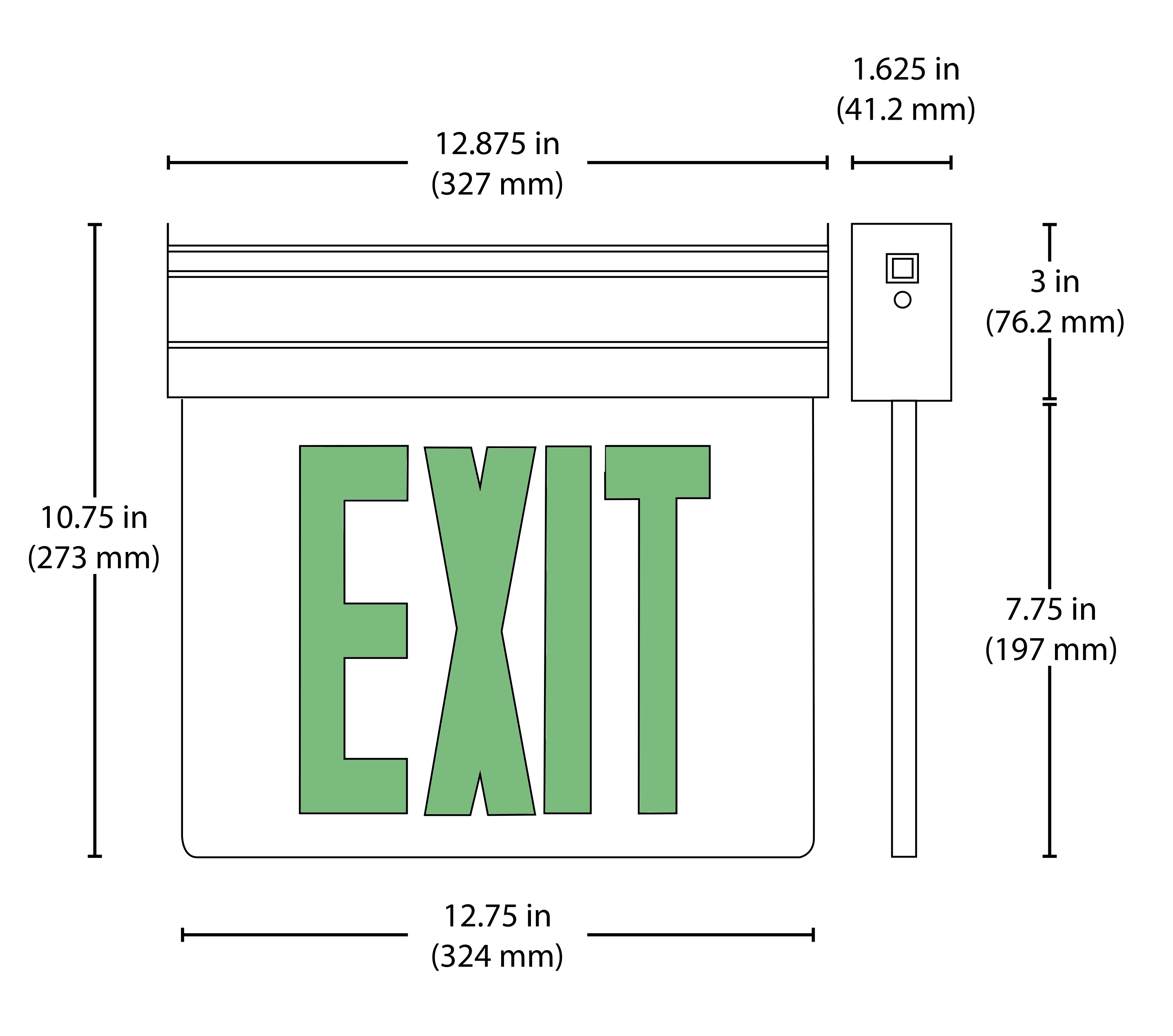 The EXL2-SD Series provides self diagnostic testing and reporting in a contemporary design with ease of installation and dependability in mind. This UL924 compliant sign is constructed of a sleek aluminum housing with clear single-faced or mirrored double-faced panels. High output LEDs deliver an indirect, evenly illuminated edge-lit exit sign with exceptional light distribution and maintenance-free nickel-cadmium battery for long life. The EXL2-SD Series offers flexible installation for surface ceiling, wall or end mount options along with field adjustable chevrons for universal configuration based on your application’s directional needs.
