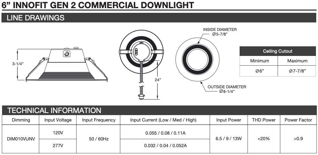 INFT6/835/DIM010UNV InnoFit G2 6" 3500K Lumen Selectable Dimmable Downlight by Green Creative