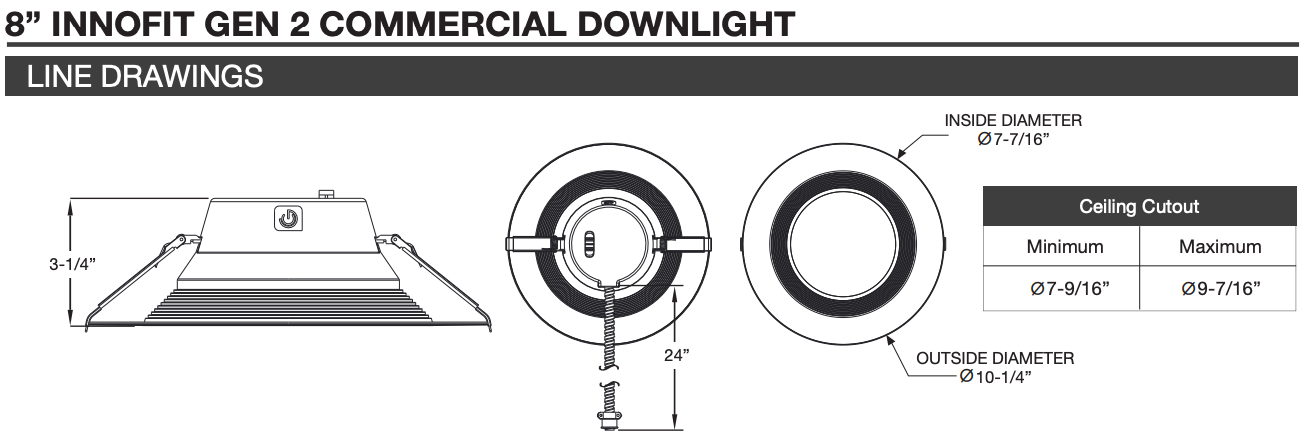 INFT8/840/DIM010UNV InnoFit G2 8" 4000K Lumen Selectable Dimmable Downlight by Green Creative