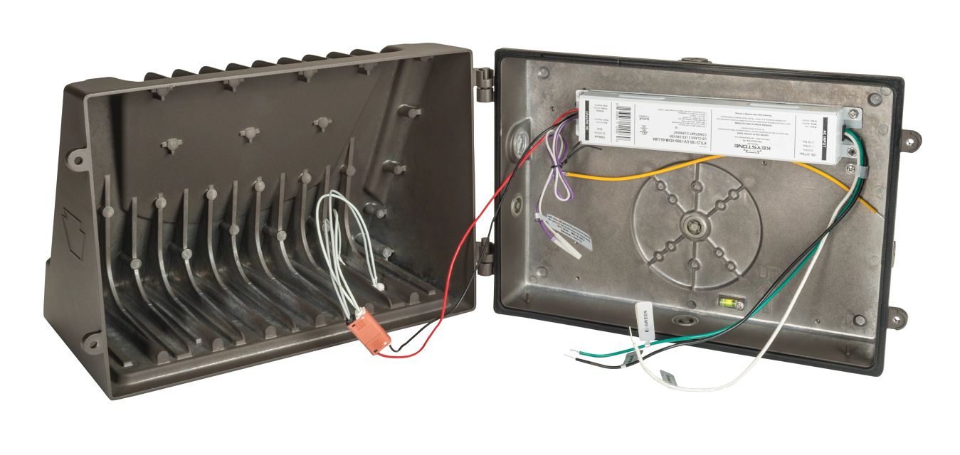 100W LED Wall Pack, Full Cutoff Medium Housing. 120-277V Input, 5000K, 0-10V Dimmable. Wide Angle Dist Pattern, Standard Bronze Housing