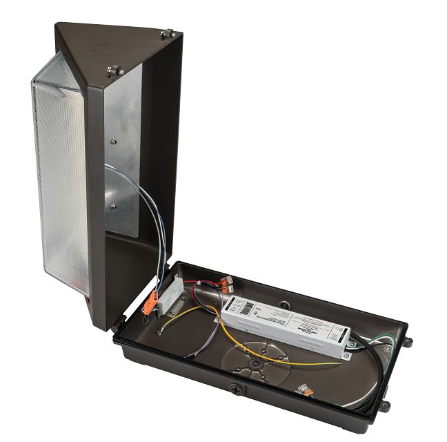 120W LED Wall Pack feat. Color Select, Traditional Open Face Large Housing. 120-277V Input, 3000K/4000K/5000K. 0-10V Dimmable. Standard Bronze Housing.