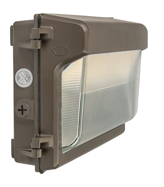 55W LED Slim Open Face Wall Pack, Power Select 55/45/35W, Color Select 30/40/50K, 120-277V Input, 0-10V Dimmable, Photocell, Bronze Housing