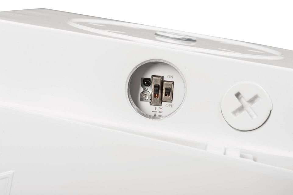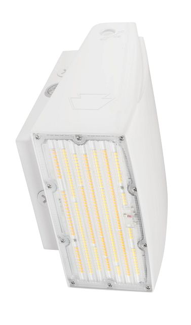 75W LED Adjustbale Wall Pack, Power Select 75/60/45W, Color Select 30/40/50K, 120-277V Input, White Housing