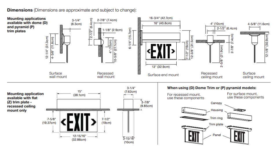 Premium die-cast aluminum and laser-etched acrylic edge-lit exit sign