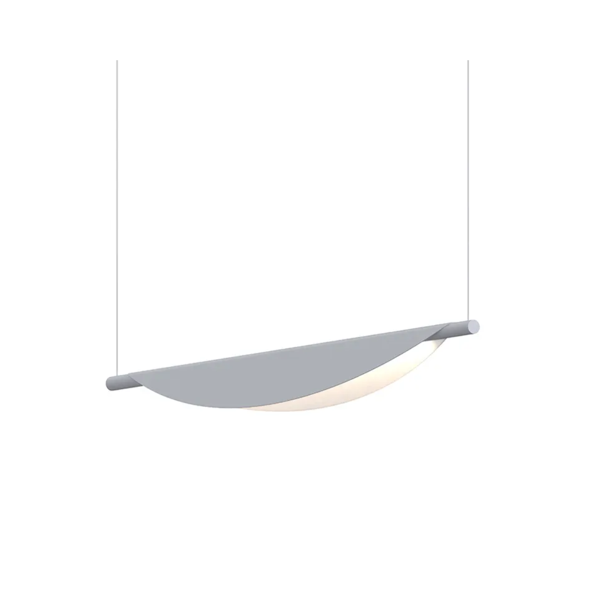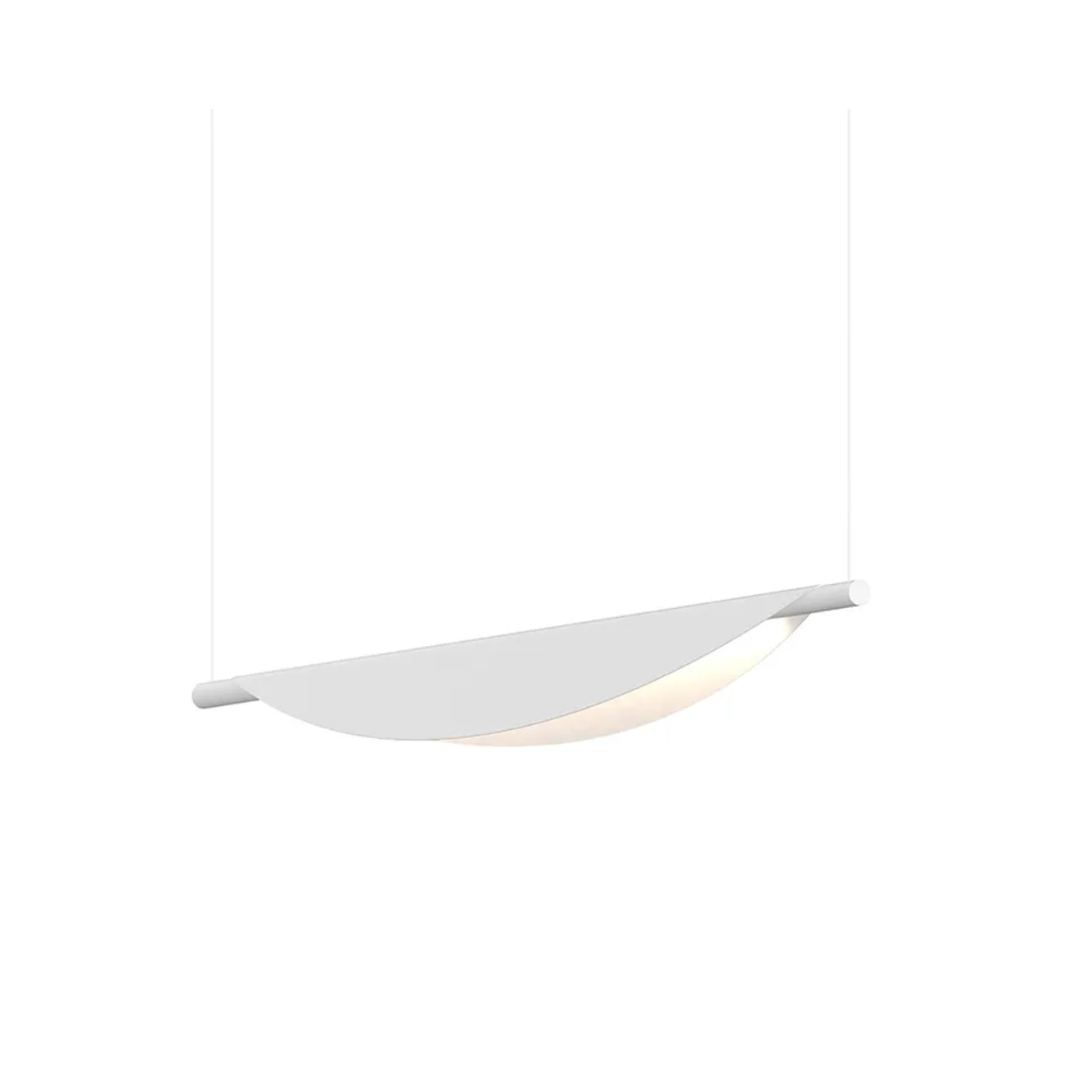 Elegantly draped along the axis of a tubular LED source, this flowing reflector directs the linear illumination downward. Tela can be used singularly or in an end-to-end linear configuration of multiple lengths as desired. Its sophisticated simplicity brings a sculptural flowing rhythm along a surface or within a linear space.